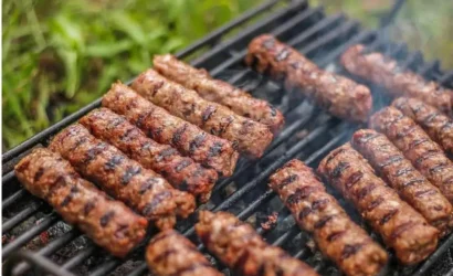 A dish featuring grilled ground meat rolls in cylindrical shape made from a mixture of beef, lamb with spices